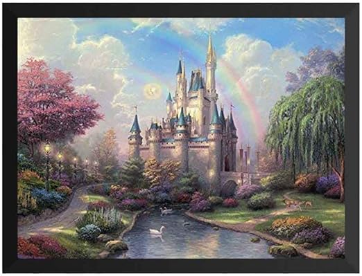 Amazon|装飾画 西洋絵画 ディズニー シンデレラ 城トーマスキンケードポスター 部屋飾り インテリア絵画 木製黒フレーム付 部屋装飾 新築祝い 贈り物 A3(33x45cm)|置物・オブジェ オンライン通販