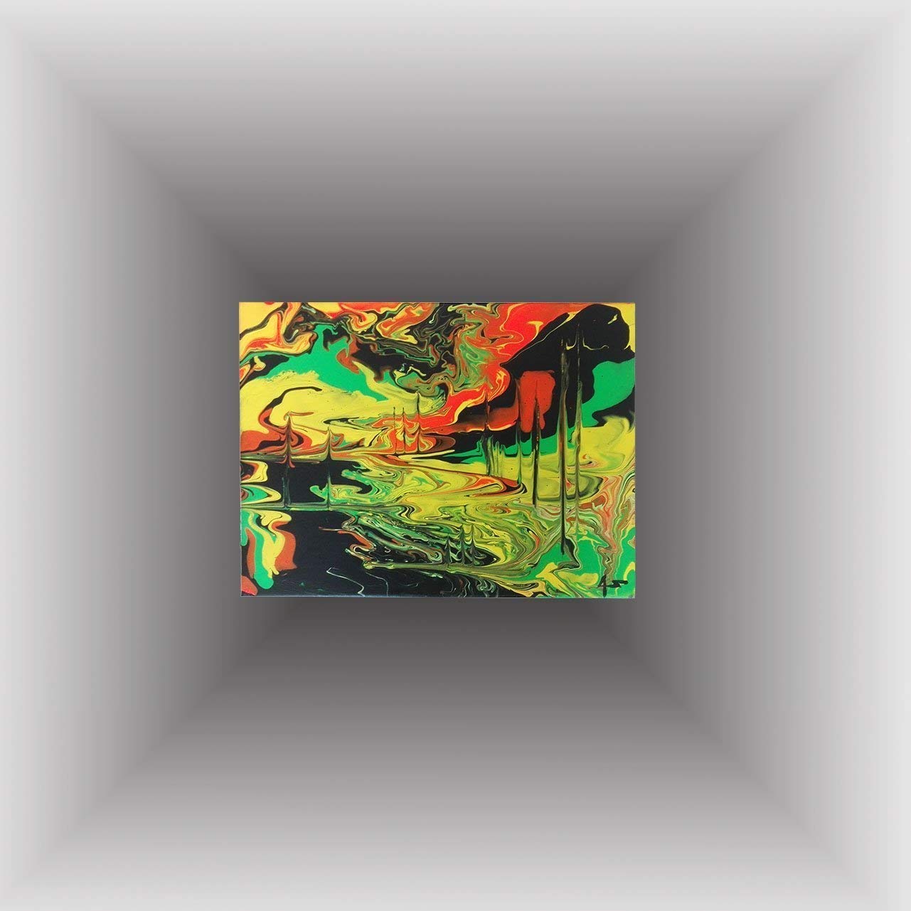 Tableau abstrait Action painting vert jaune rouge à l'acrylique. Peinture aléatoire toile 40cmx30cm. Art abstrait peintre Goartdeco. Deco salon, chambre.: Amazon.fr: Handmade
